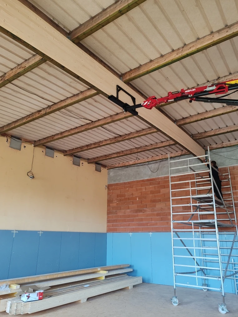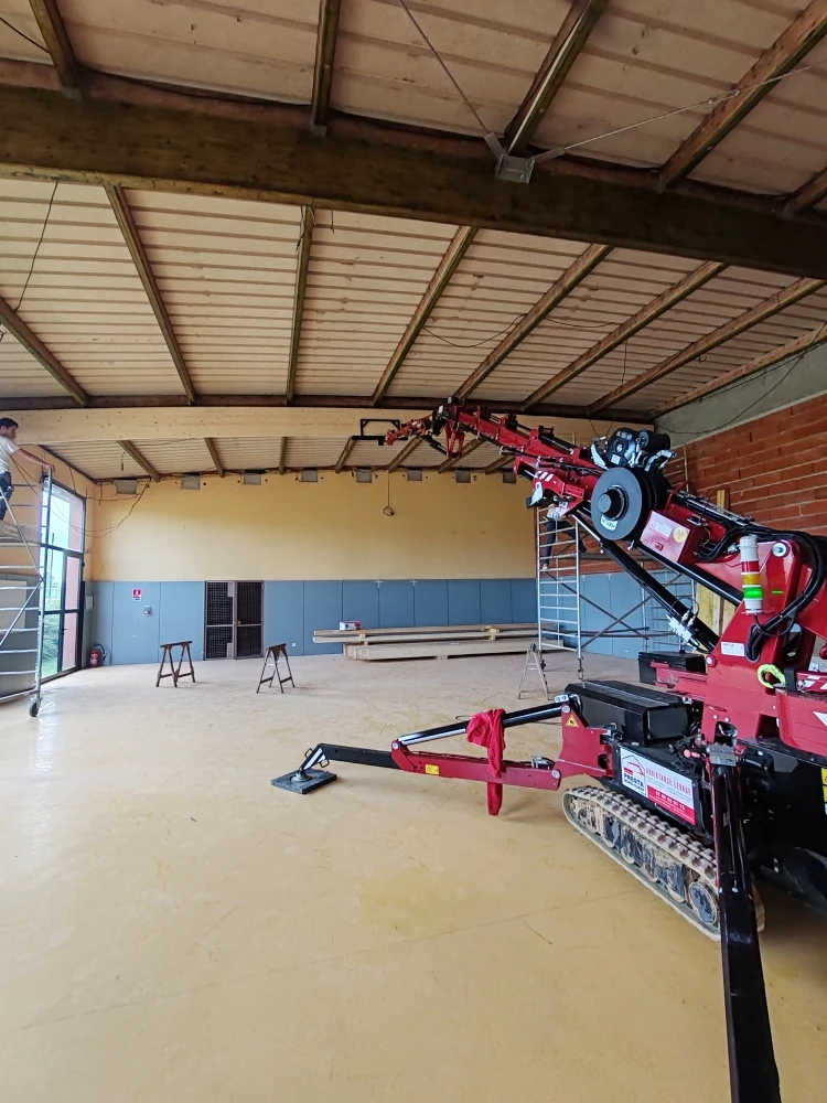 Dans le cadre d’un chantier technique à Buchy (76), l’entreprise Presta Nord Ouest a démontré toute son expertise en effectuant le levage d'une charpente en bois lamellé-collé à l'aide de sa grue électrique C6. Une opération rendue possible grâce à l'utilisation d’un accessoire de levage sur mesure, spécialement conçu pour permettre un levage par le dessous, méthode rare et exigeante.
